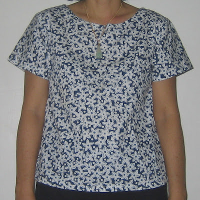 This is made from an old shirt of my sister. The collar of her shirt was worn out and she did not want to wear it any more. I transformed this worn out shirt into a sleeveless top. I love this cotton fabric top. The blue roses and the colour combination of this fabric is very pretty.