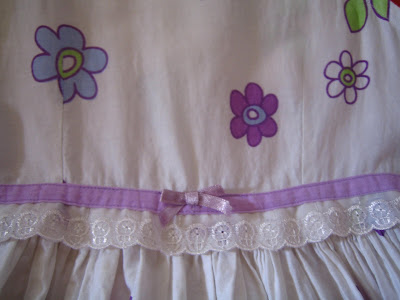 I made this dress for my 10 years old niece a few years ago. Actually I made four similar dresses for four of them, age 7 to 11. The other three have been given away because my nieces have grown up and cannot fit already. This is the only one that my sister keep for her youngest daughter.