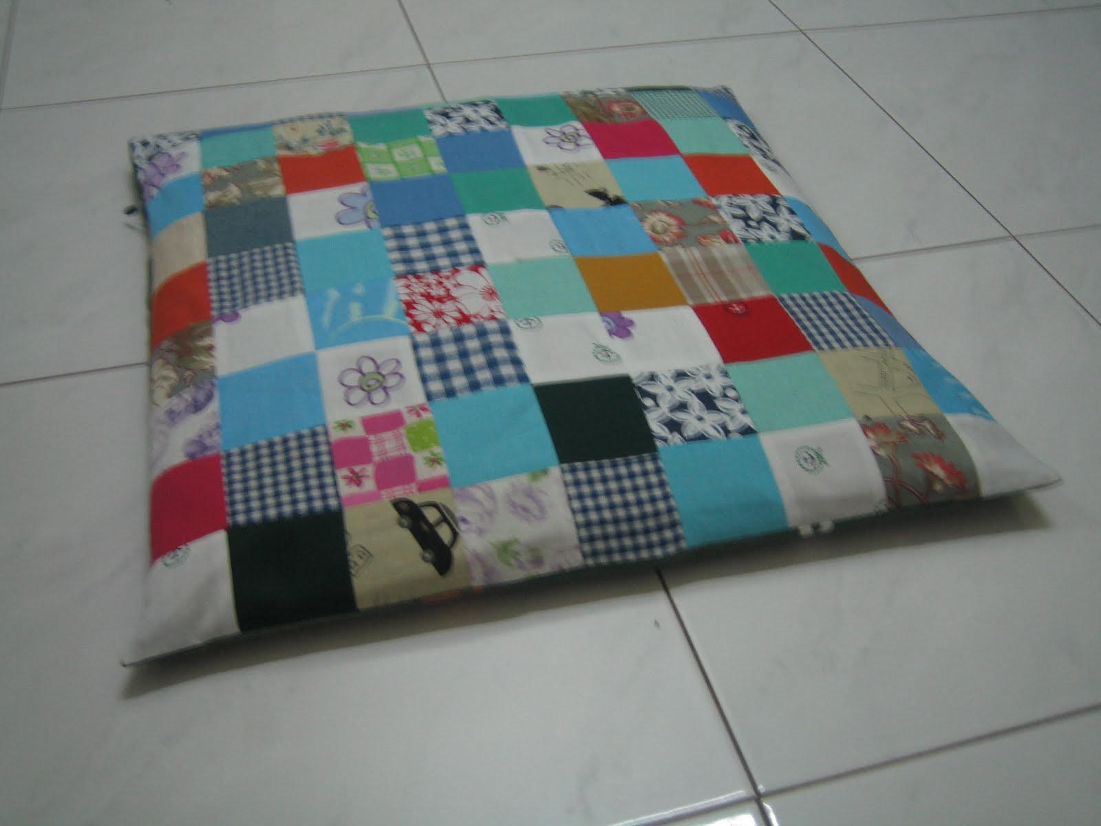 I made another patchwork floor seat cushion a few weeks back. It was made from 91 pieces of 2.5" square fabric scraps.