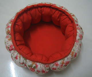 I think this basket is a failure. I am totally angry with myself because I did not stuff the binding on the top while hand stitching it. I thought it will be alright without stuffing but it isn't. The result is just not satisfactory , yet when my hubby saw it, he said it is just too cute. I think one day