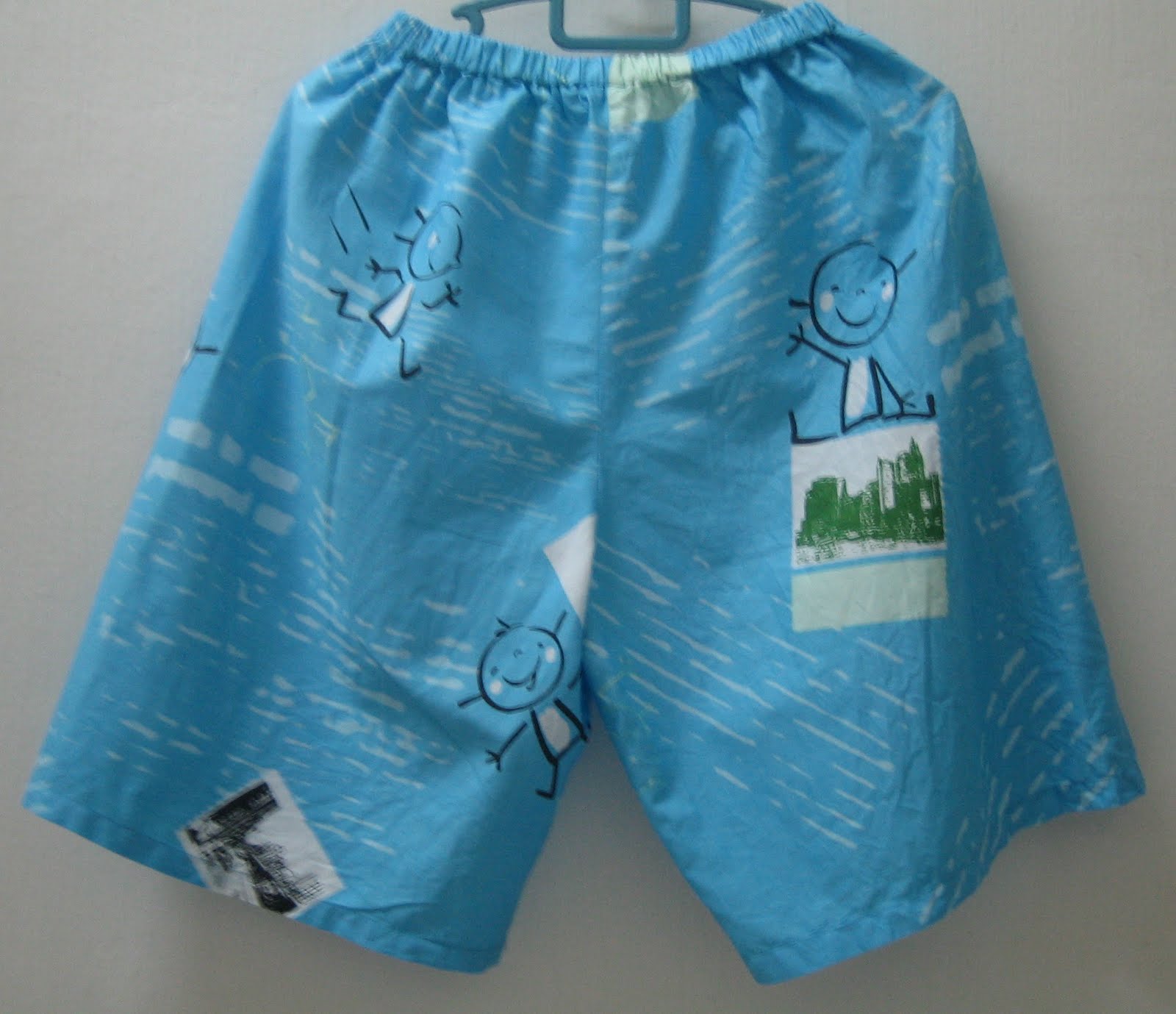 I bought this cute blue cotton fabric two weeks ago. My 16 years old nephew saw it and told me that he likes the blue colour as well as the print. I promised him I will sew a shorts for him .